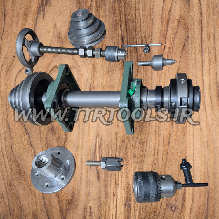 - **شفت دو رزوه** (قطر ۳۵) برای اتصال بخشهای مختلف دستگاه{ بستن سه نظام دریلی و چهار نظام خراطی}