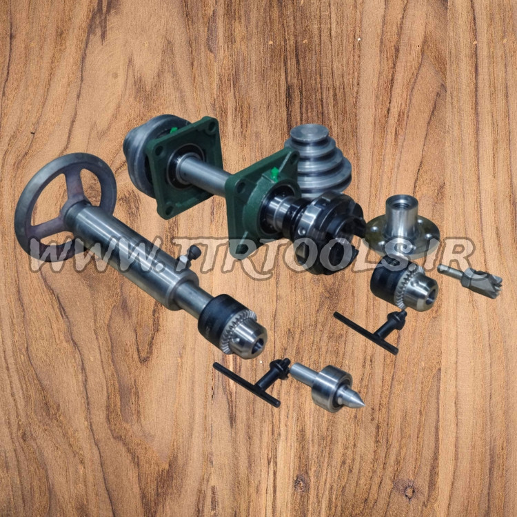 - **شفت دو رزوه** (قطر ۳۵) برای اتصال بخشهای مختلف دستگاه{ بستن سه نظام دریلی و چهار نظام خراطی}